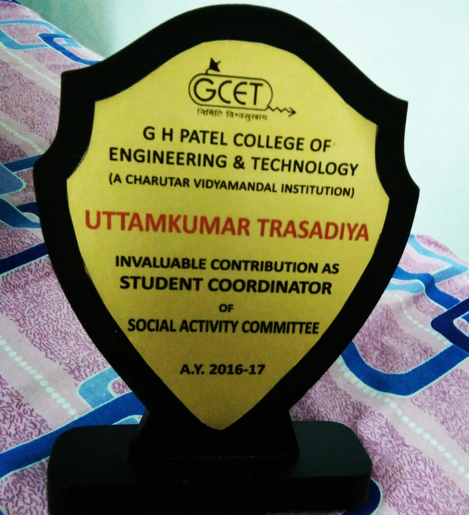 Awarded by GCET COLLEGE Posted byAdminApril 12, 2017Posted inUttam Trasadiya Share this: Click to share on X (Opens in new window) X Click to share on Facebook (Opens in new window) Facebook